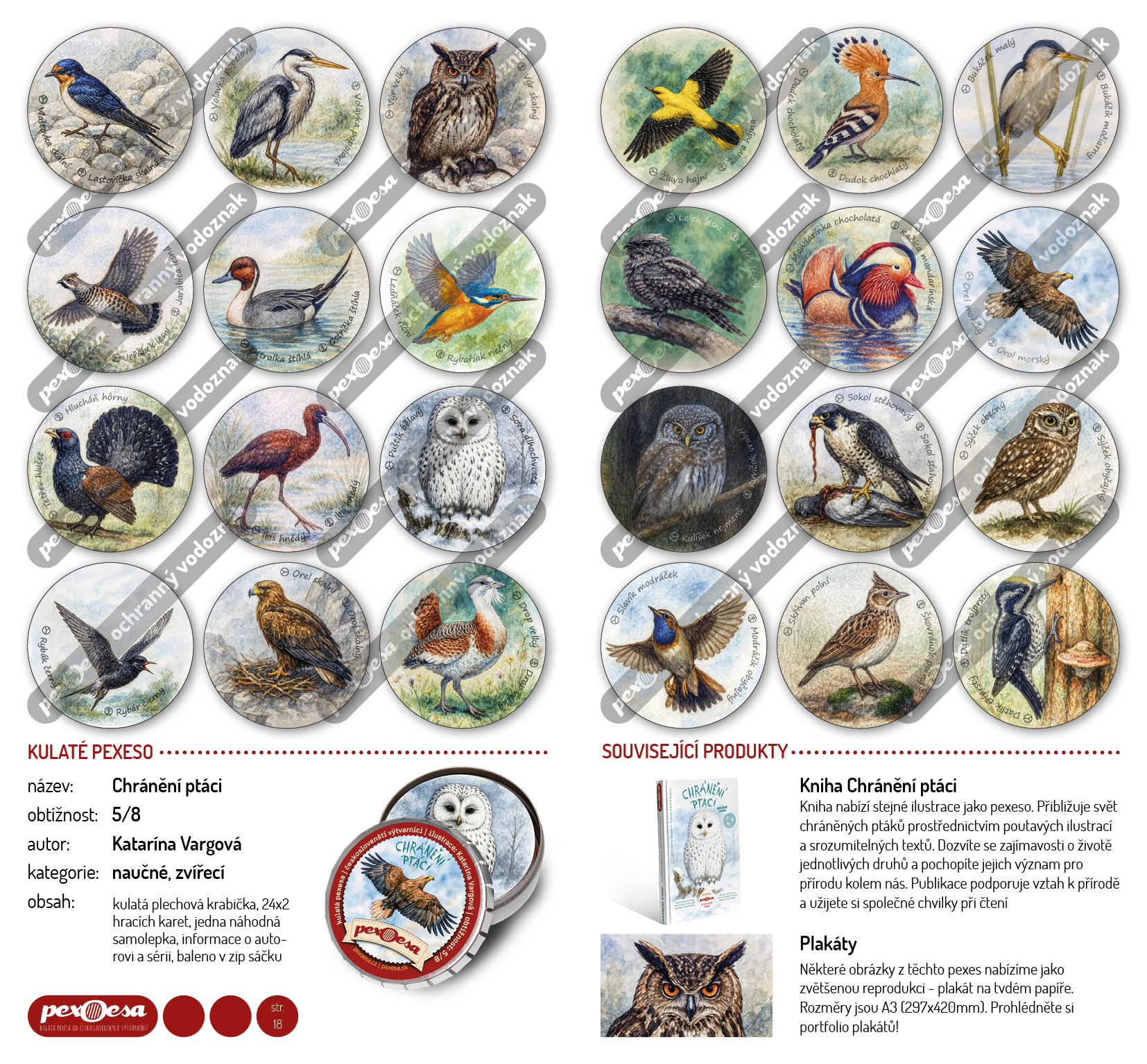 Série Chránění ptáci patří mezi naučná pexesa projektu PexOesa. Cílem není jen trénovat paměť, ale i rozvíjet zájem o přírodu, rozpoznávání druhů a porozumění jejich významu pro ekosystém. Každý motiv tak může být podnětem k rozhovoru o tom, proč jsou některé druhy chráněné. Nabídne stejné ilustrace doplněné o příběhy, popisy a zajímavosti ze života těchto opeřenců.